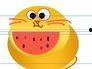 2. 瓜田里的猫咪:这幅作品以瓜田为背景,一只猫咪正躺在瓜堆里,悠闲地吃着瓜,画面温馨又有趣。